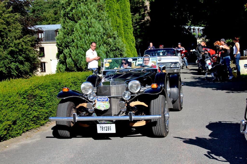 Donc 9 heures 30, arrivée à la concession pour découvrir un immense petit déj’ de bienvenue servi par Jeff et Christine qui dirigent Passion Road et départ pour une petite balade apéritive. Là encore, on sort des sentiers battus, les motos de la balade s’étaient intercalées avec des véhicules d’exception !!!! Arrivée pour 11 heures 30 sur le premier site : la mairie de Maffliers, où deux food trucks nous attendaient, l’indispensable bar tenu par des membres du chapter, des jeux pour enfants, des jeux de sociétés pour les seniors, le tout dans le parc ombragé de la mairie. |