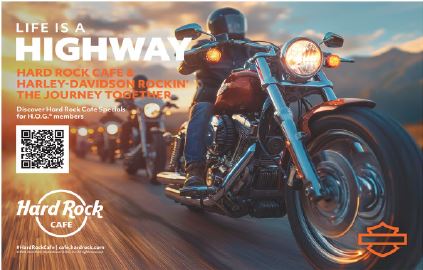 Vous profitez d’une remise de 15% sur les tarifs des chambres (petit dejeuner gratuit) et de 10% sur une sélection d’articles à faire valoir dans les Rock shops. Réservation à faire sur le site www.hardrockhotels.com avec le code HARLEYD. Vous devrez présenter votre carte HOG à votre arrivée à l’hôtel.